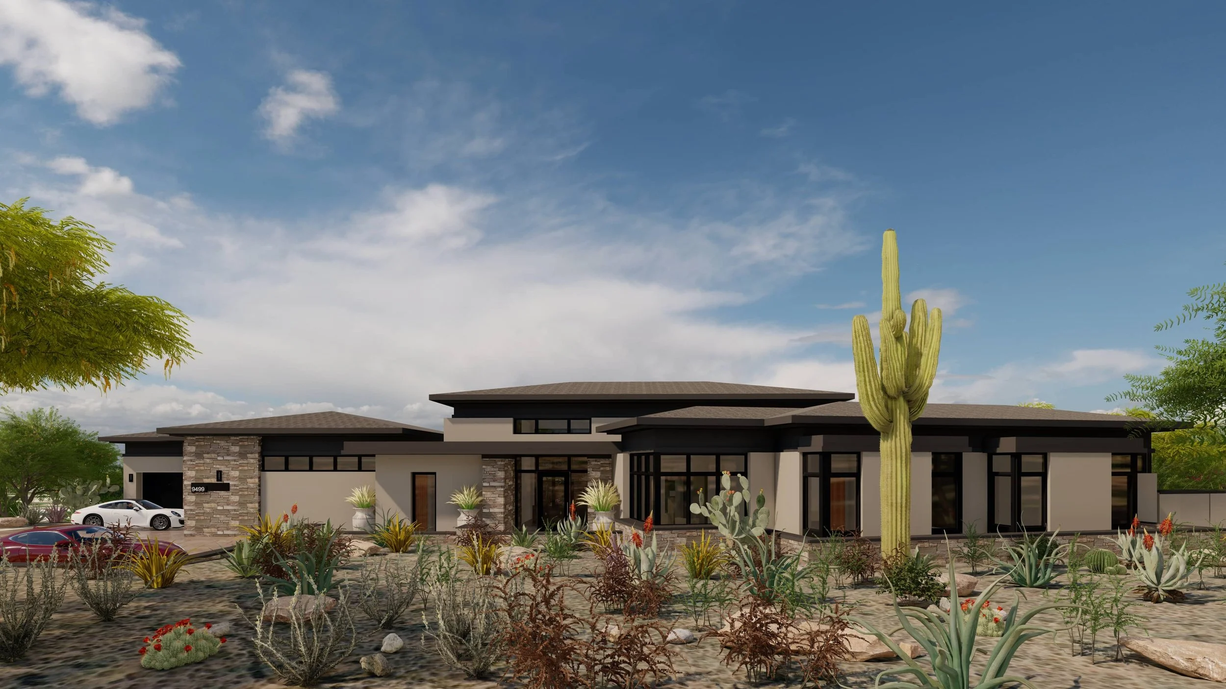 Every architectural style is deep rooted in history, so that is always where we begin. Understanding that theHOA was looking for a product thatfit in with the desert landscape, but was also contemporary in nature we researched desert architectural styles. One style in particular that hasn’t been celebrated as much as it could be was Frank Lloyd Wright’s Prairie architecture that evolved from its Chicago vernacular when Wright moved to Arizona and founded The School at Taliesin West. Deep overhangs, horizontal exterior elements and recessed windows all coincided well with the desert southwest feel and the designg uidelines, so we decided to explore this style in a contemporary context.